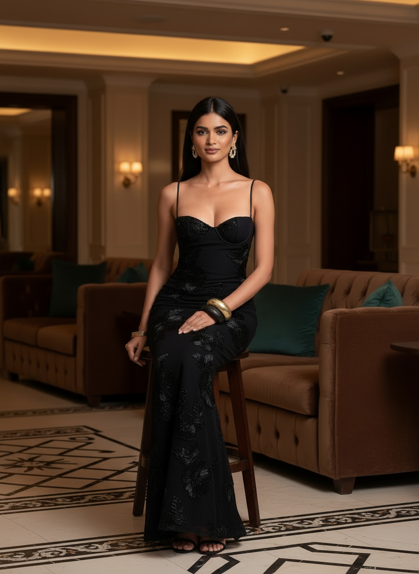 Midnight Black: A striking, high-contrast look where the tonal embroidery adds a subtle, shimmering depth.