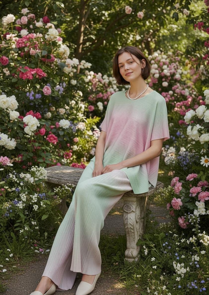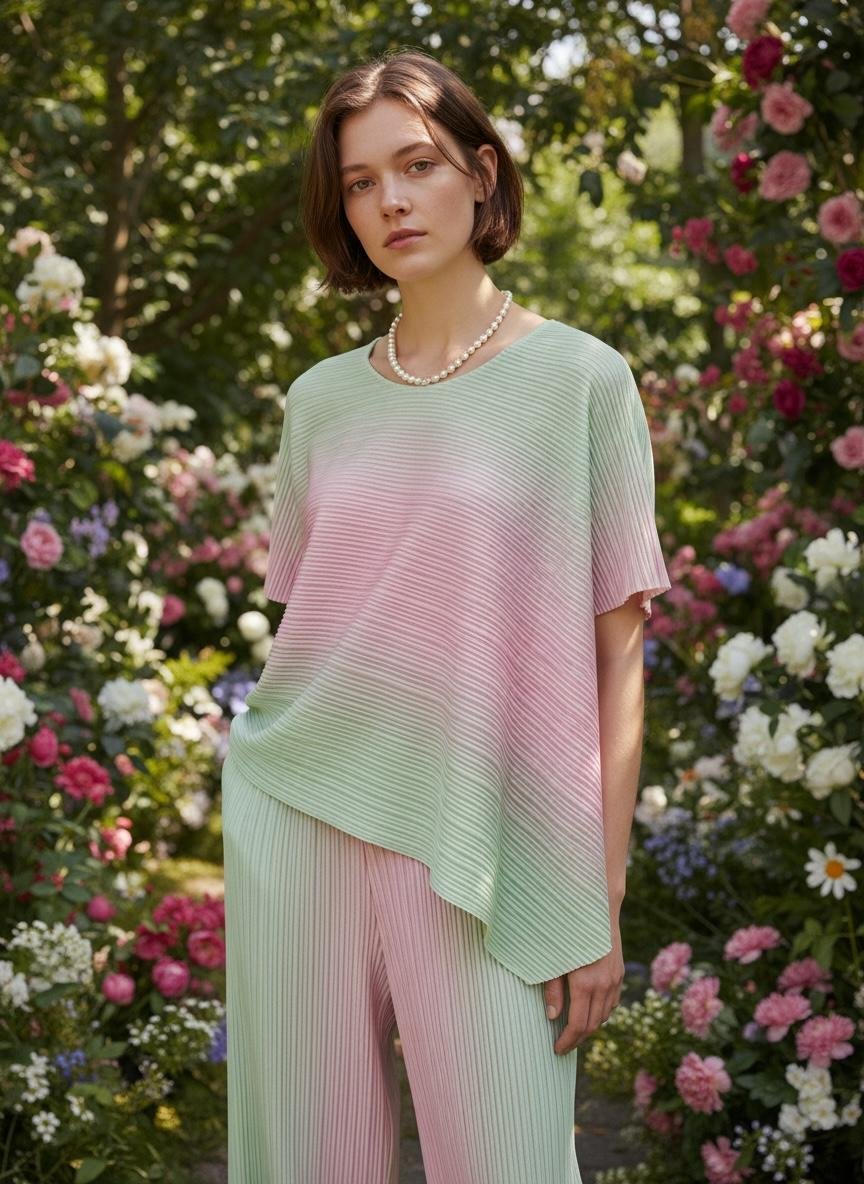 Experience the perfect blend of modern architecture and effortless grace with our Pastel Pleated Asymmetric Co-ord Set. Featuring a high-low asymmetrical hemline and a delicate mint-to-blush ombré wash, this set is designed for the woman who values comfort without compromising on high-fashion style. The accordion-pleated fabric creates a dynamic, fluid silhouette that feels as light as air. Whether you’re heading to a garden party or looking for the ultimate luxury lounge piece, this set offers an unforgettable, feminine aesthetic.